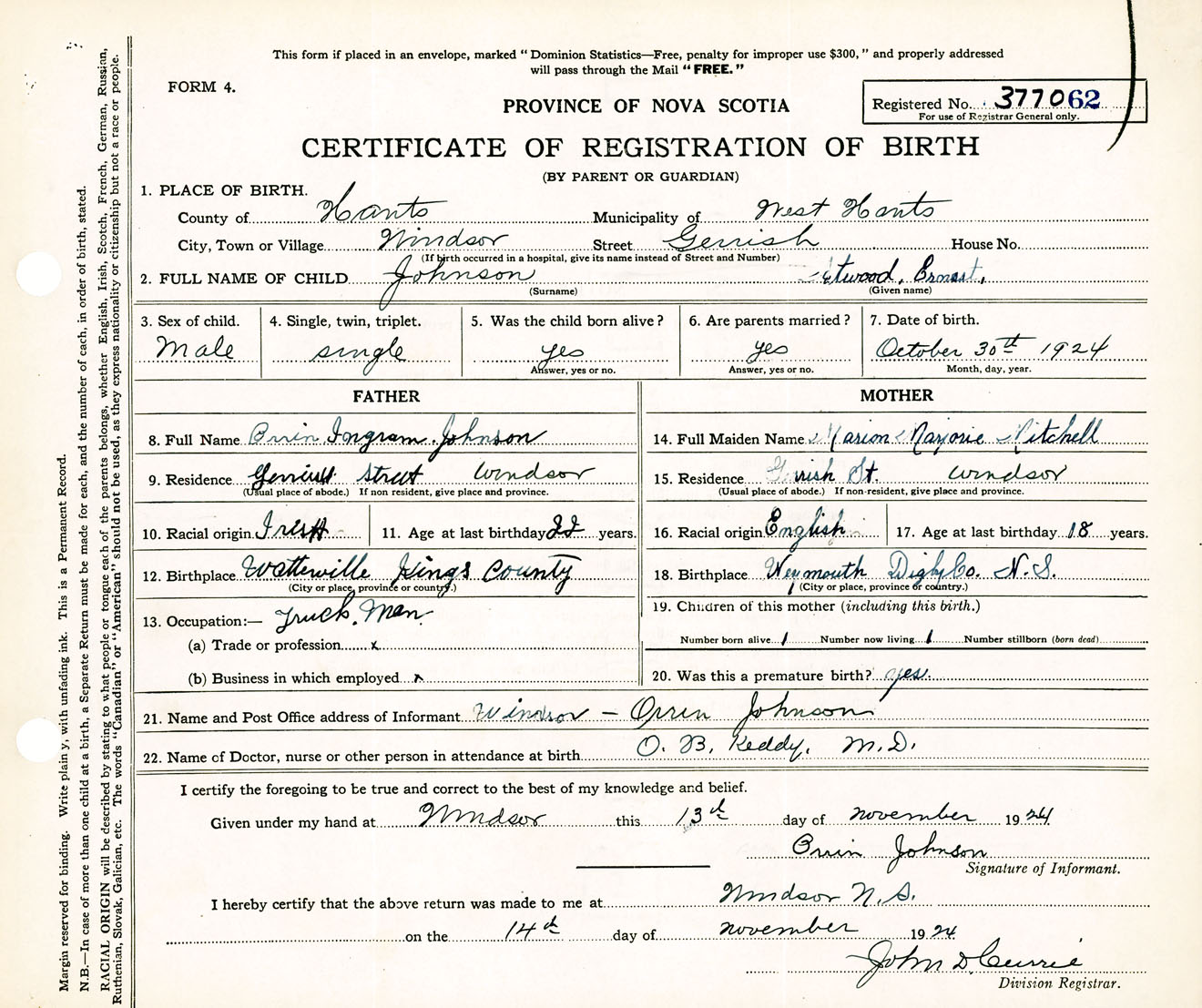 Male Birth Registration: Year: 1924 number: 37700062