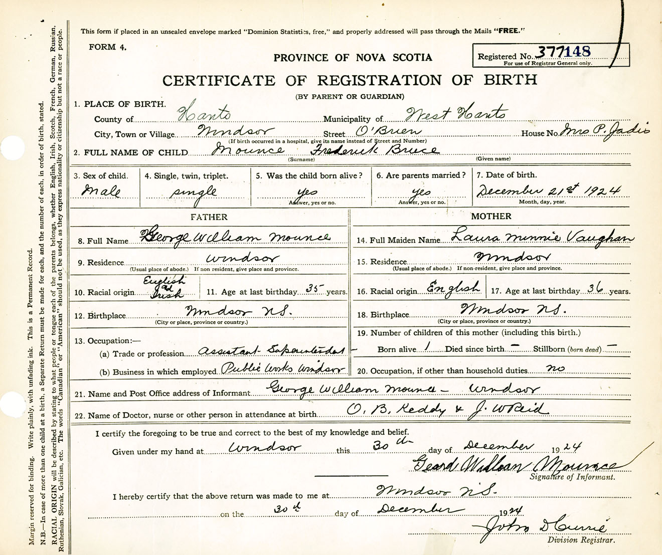 Male Birth Registration: Year: 1924 number: 37700148