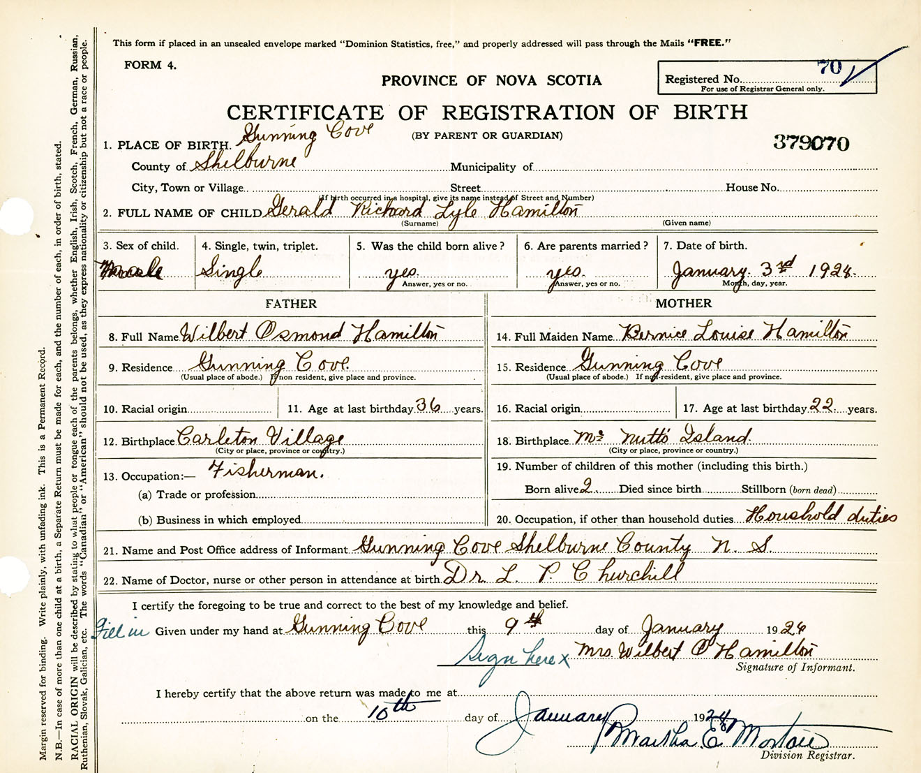 Male Birth Registration: Year: 1924 number: 37900070