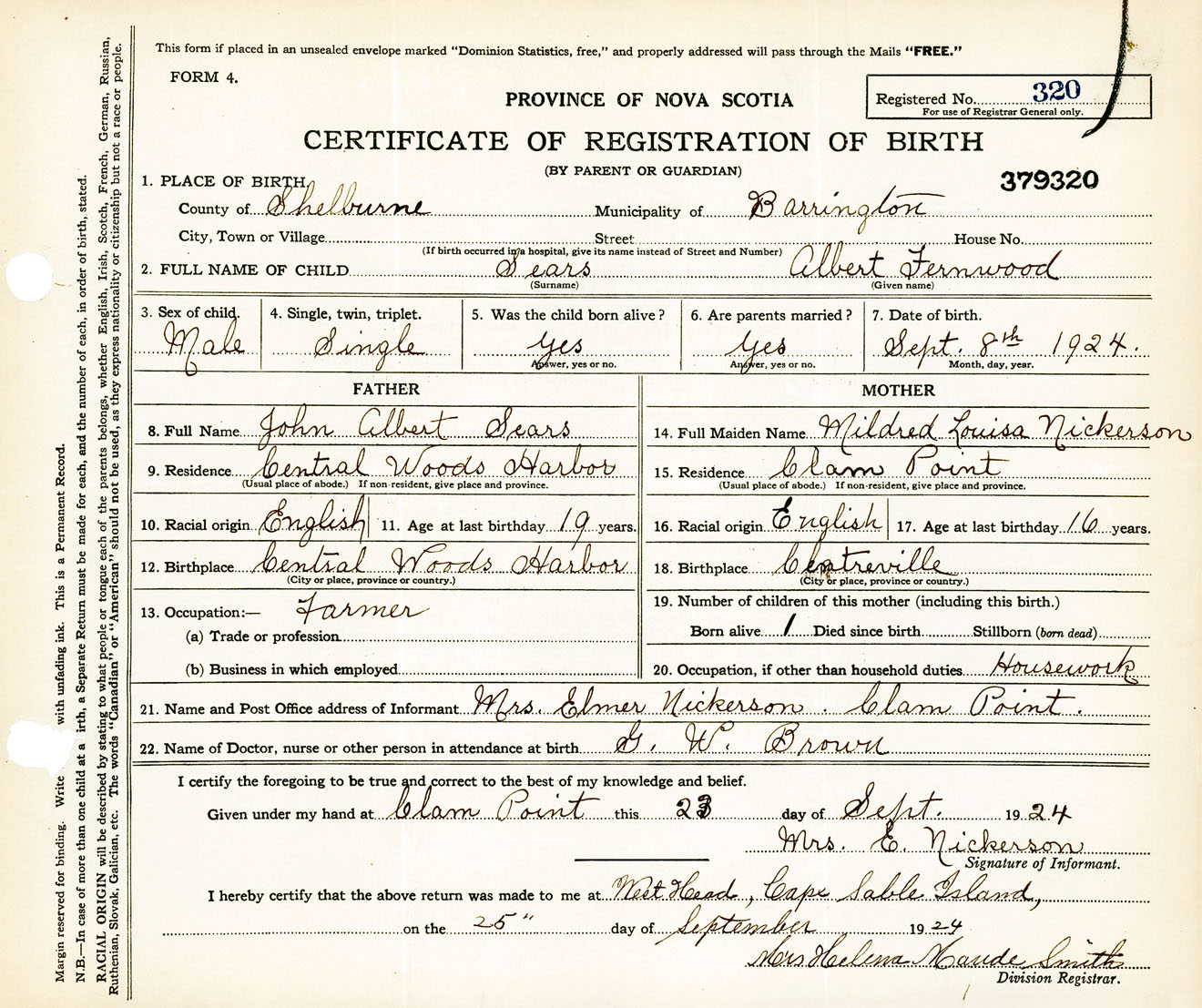 Male Birth Registration: Year: 1924 number: 37900320