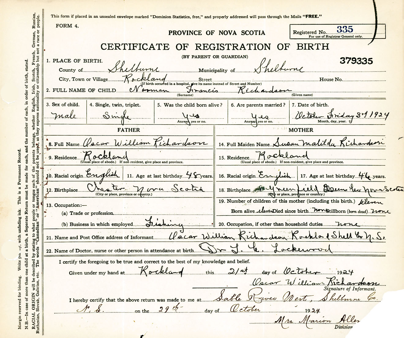Male Birth Registration: Year: 1924 number: 37900335