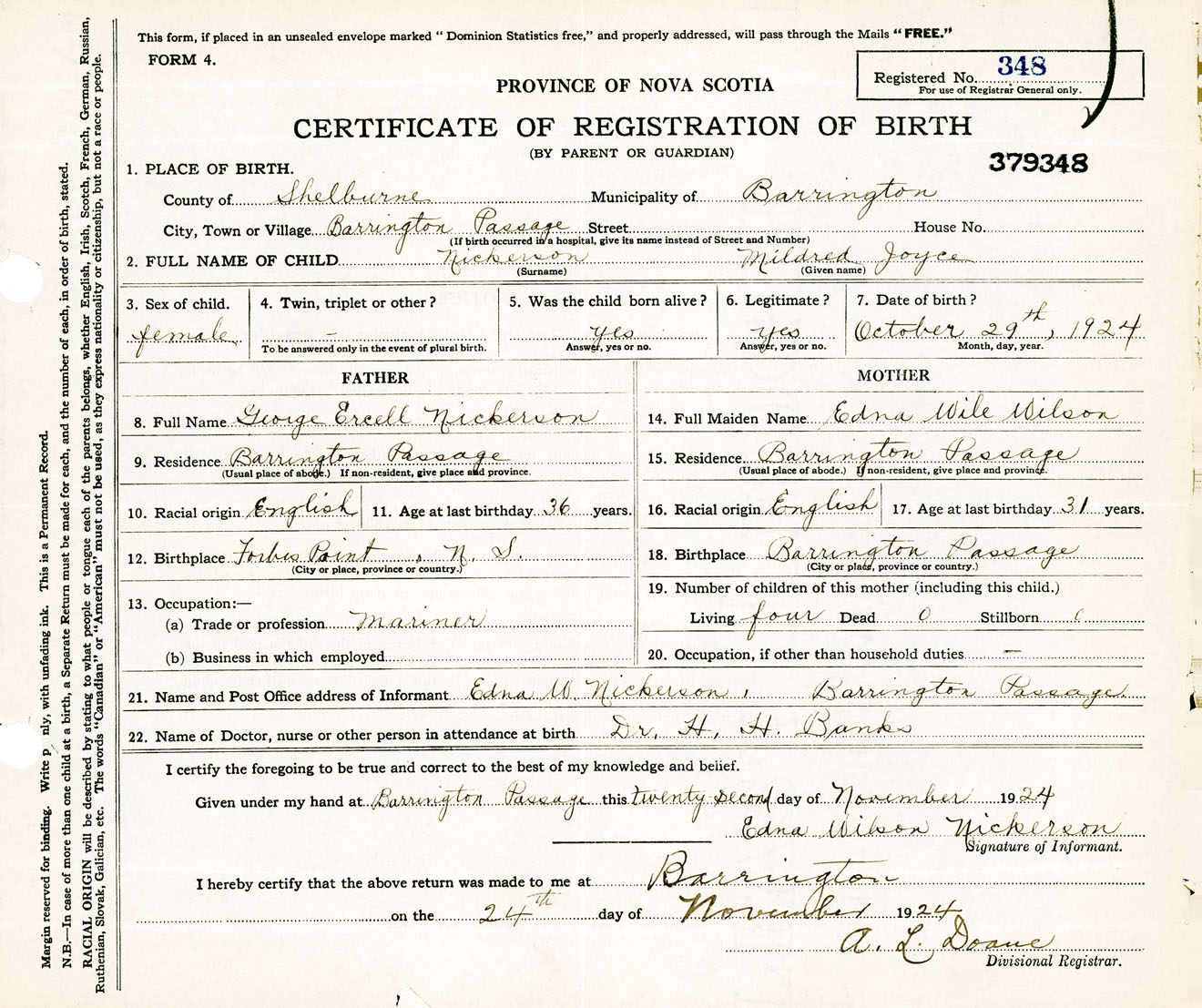 Female Birth Registration: Year: 1924 number: 37900348