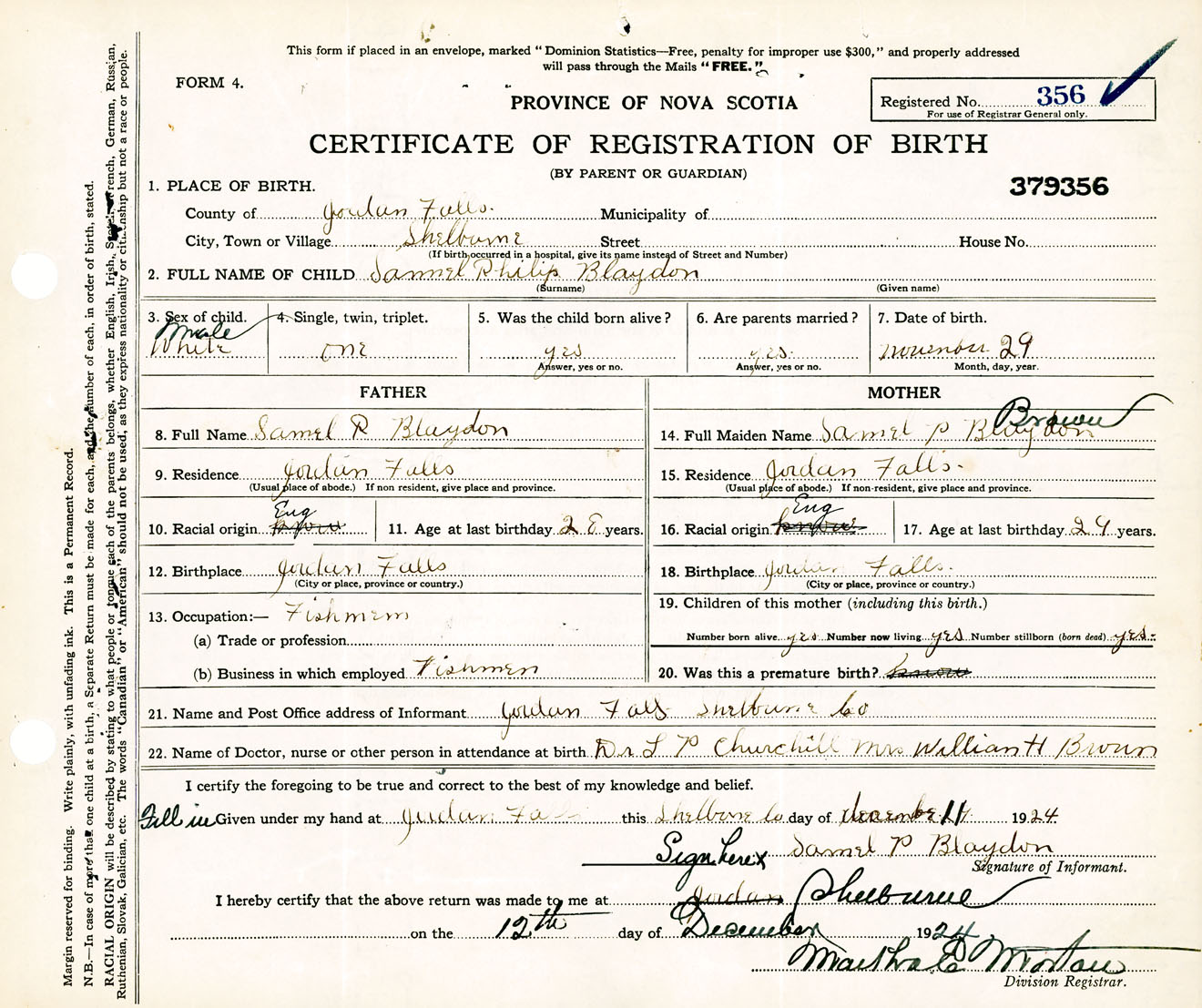 Male Birth Registration: Year: 1924 number: 37900356