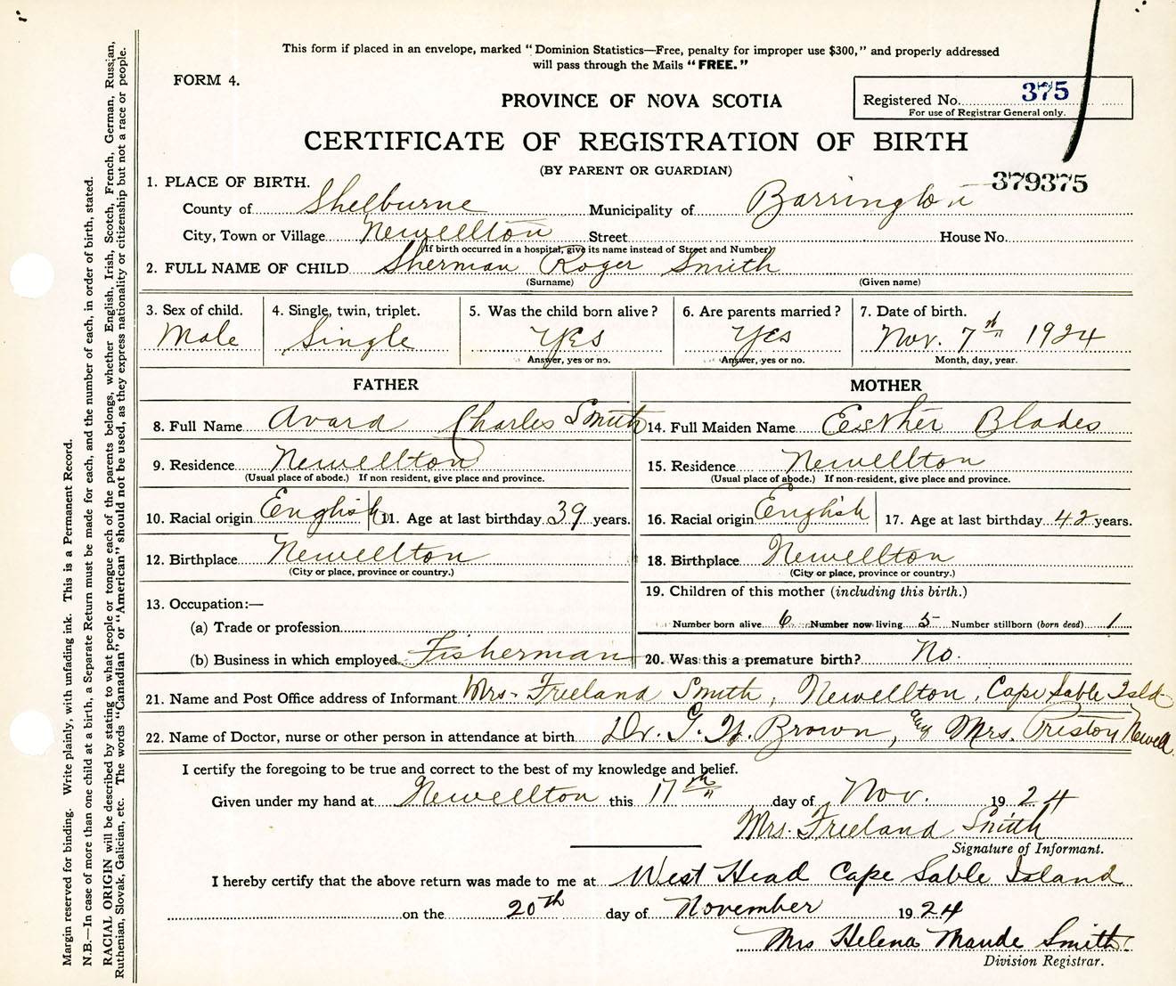 Male Birth Registration: Year: 1924 number: 37900375