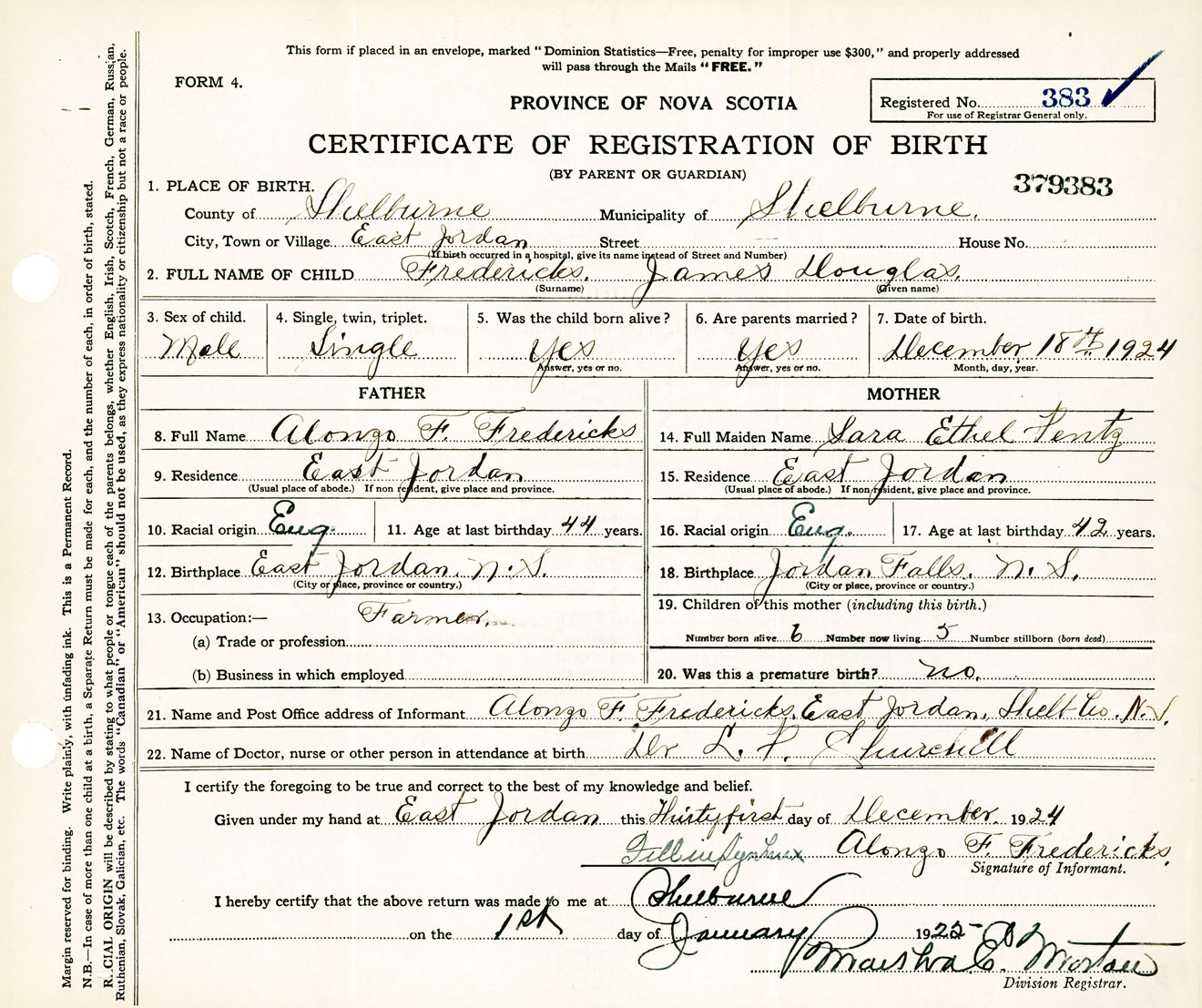 Male Birth Registration: Year: 1924 number: 37900383