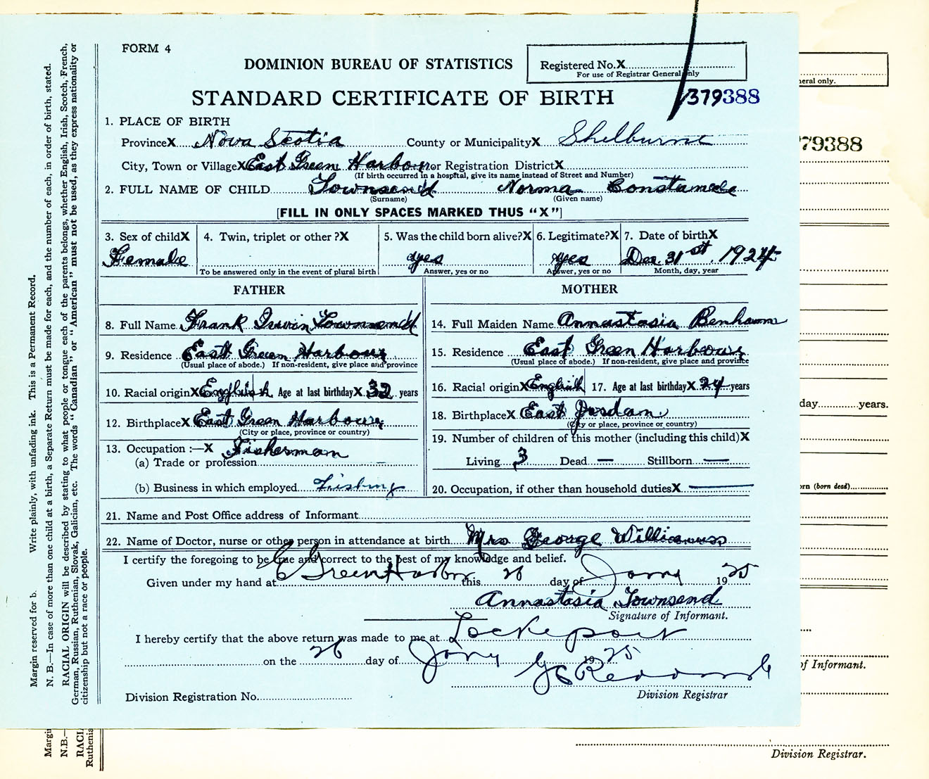 Female Birth Registration: Year: 1924 number: 37900388