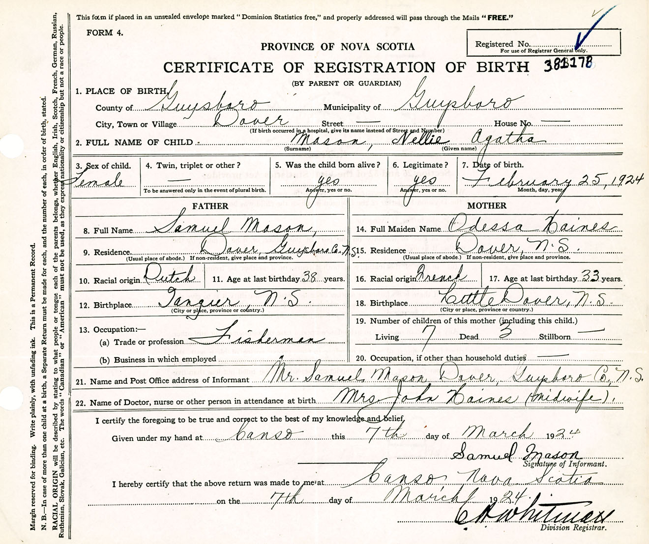 Female Birth Registration: Year: 1924 number: 38100178