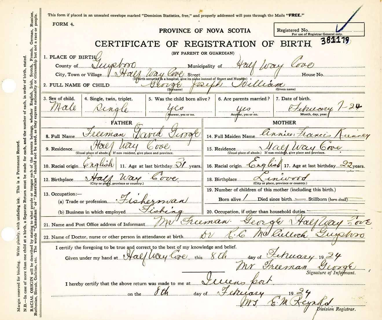 Male Birth Registration: Year: 1924 number: 38100179