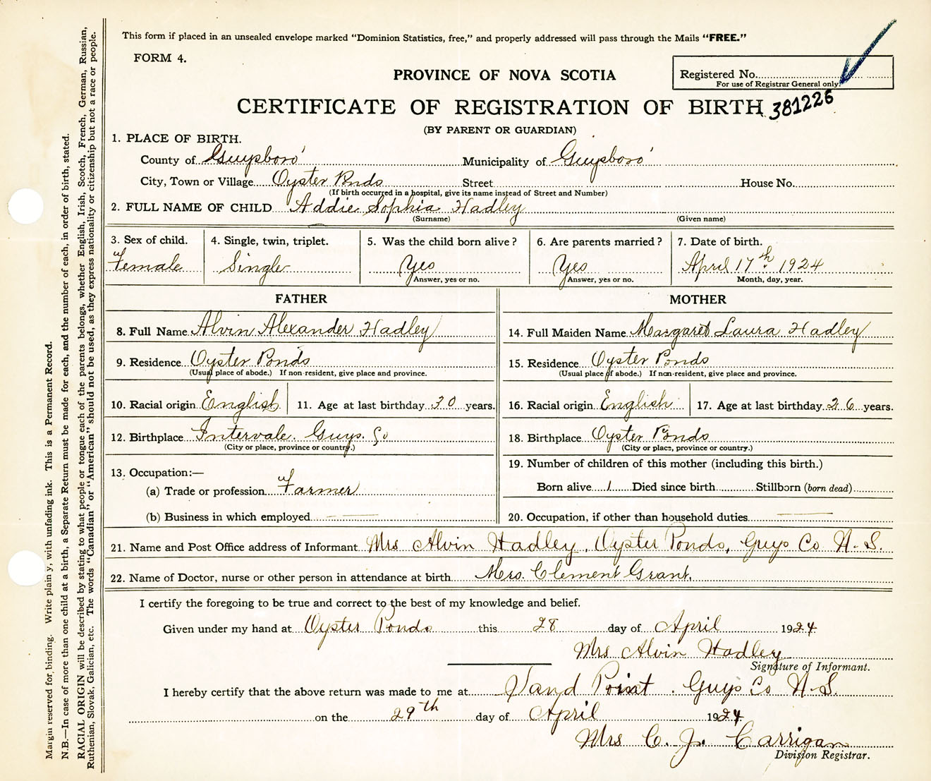Nova Scotia Archives — https://archives.novascotia.ca/vital-statistics/birth/?ID=449166