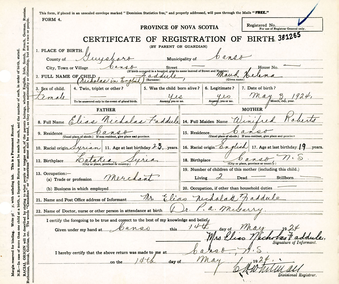 Nova Scotia Archives — https://archives.novascotia.ca/vital-statistics/birth/?ID=449205
