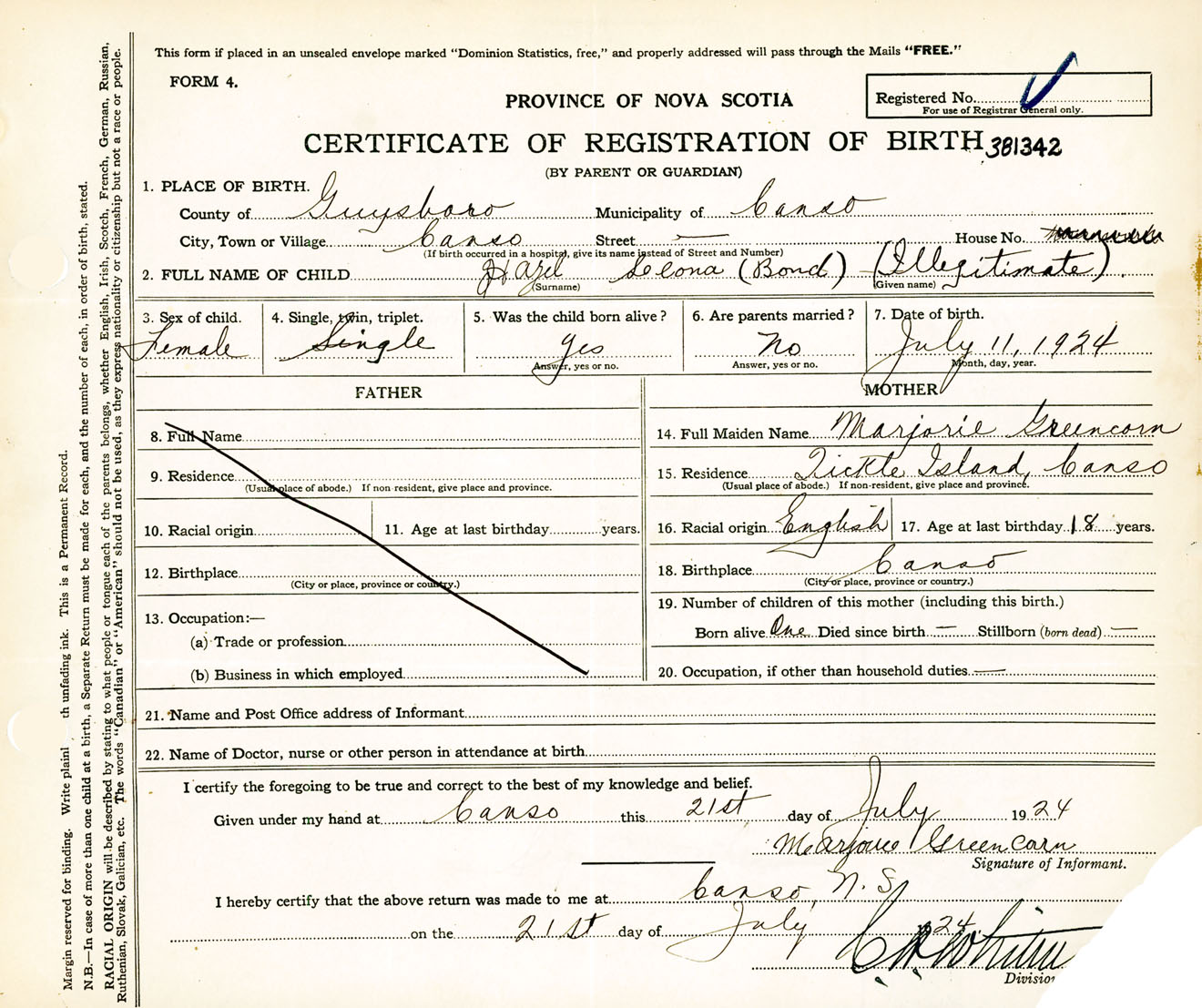 Female Birth Registration: Year: 1924 number: 38100342