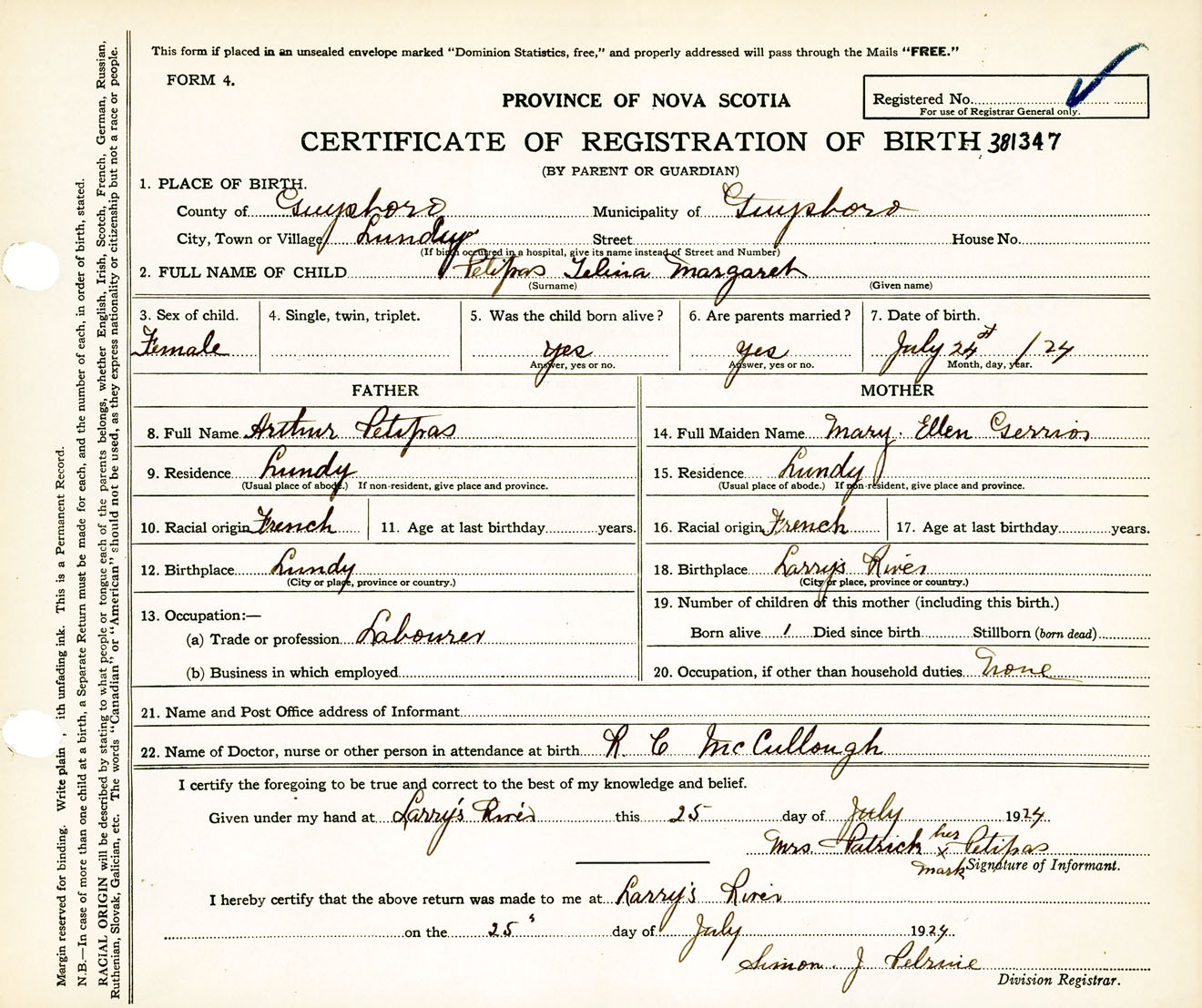 Nova Scotia Archives — https://archives.novascotia.ca/vital-statistics/birth/?ID=449287
