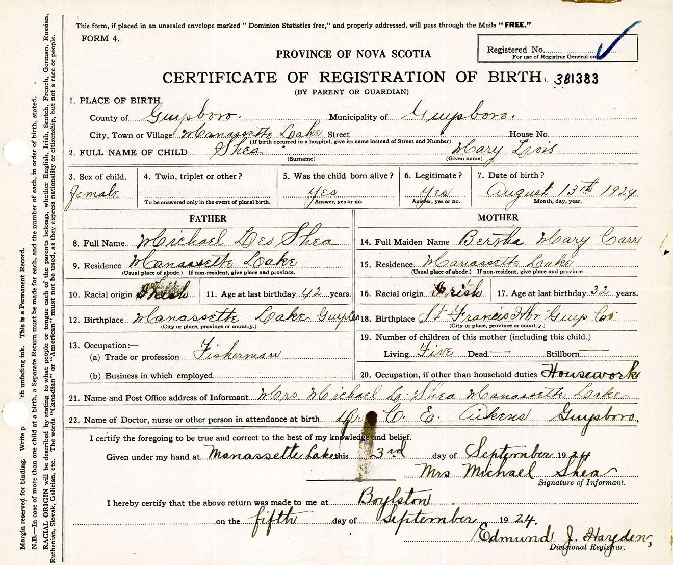 Female Birth Registration: Year: 1924 number: 38100383