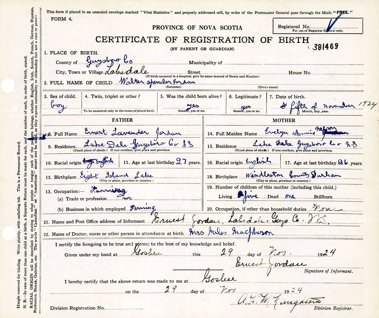 Male Birth Registration: Year: 1924 number: 38100469