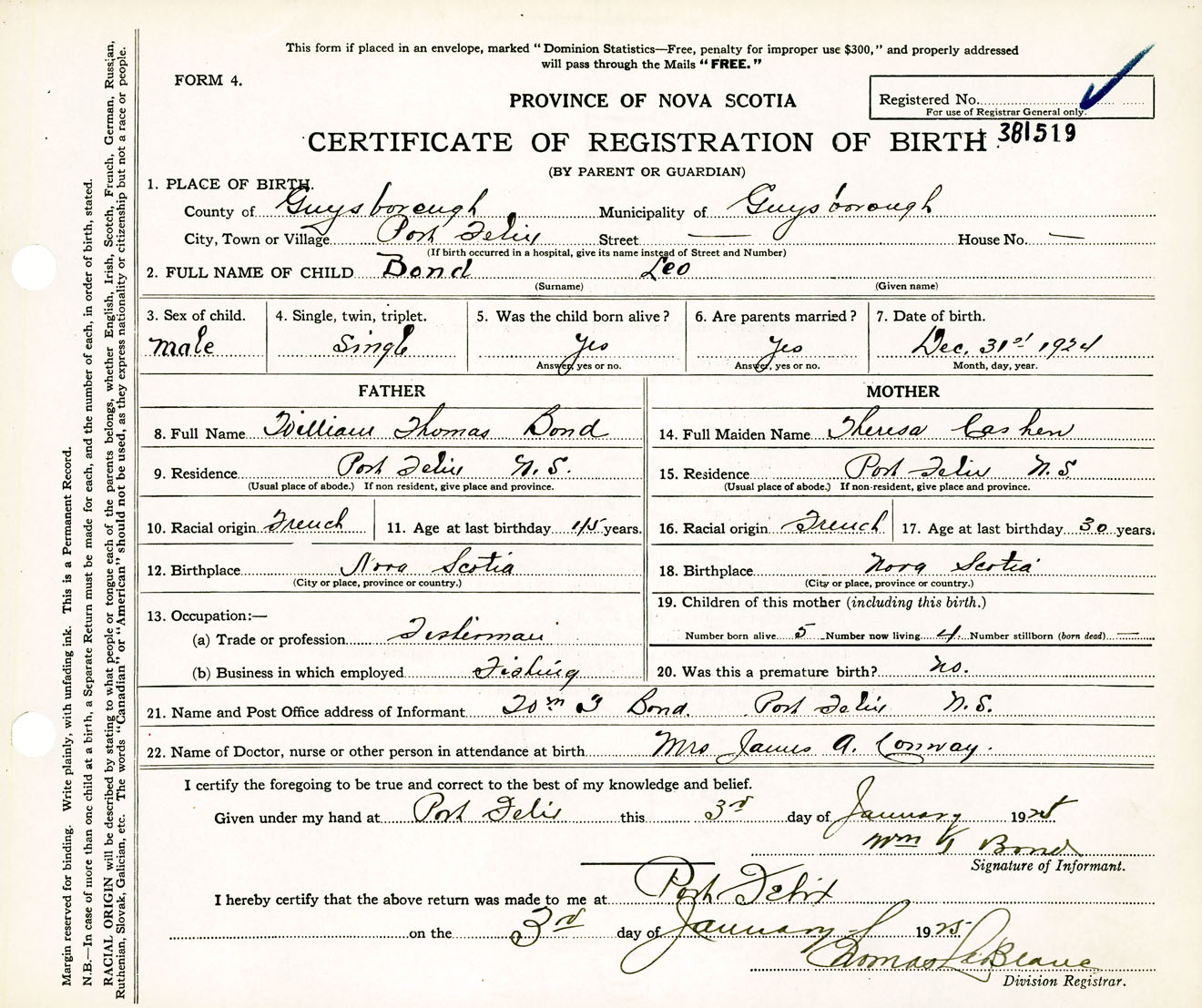 Male Birth Registration: Year: 1924 number: 38100519
