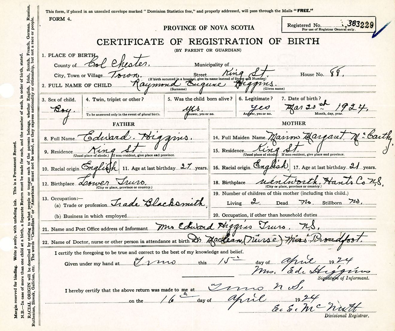 Male Birth Registration: Year: 1924 number: 38300229