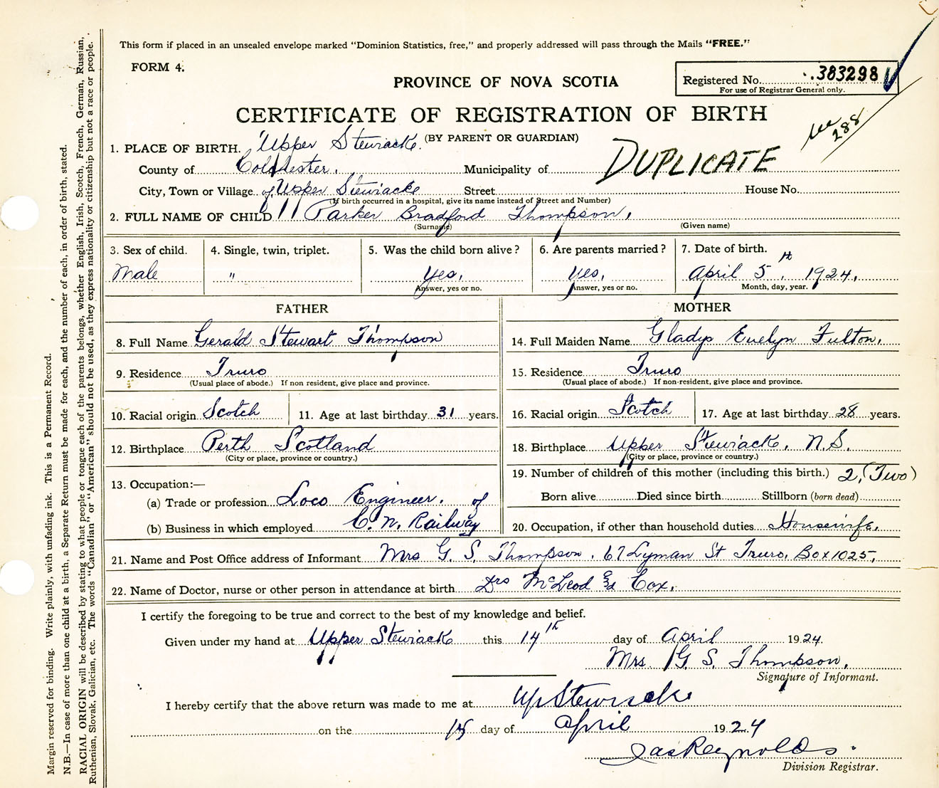 Male Birth Registration: Year: 1924 number: 38300298