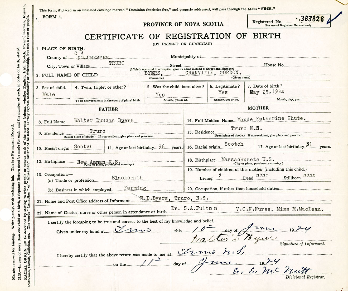 Male Birth Registration: Year: 1924 number: 38300326