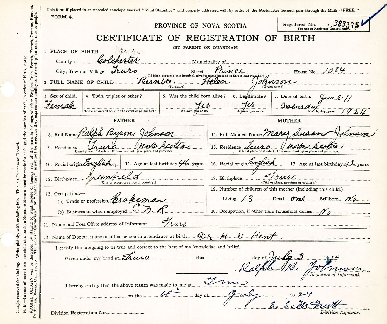 Female Birth Registration: Year: 1924 number: 38300375