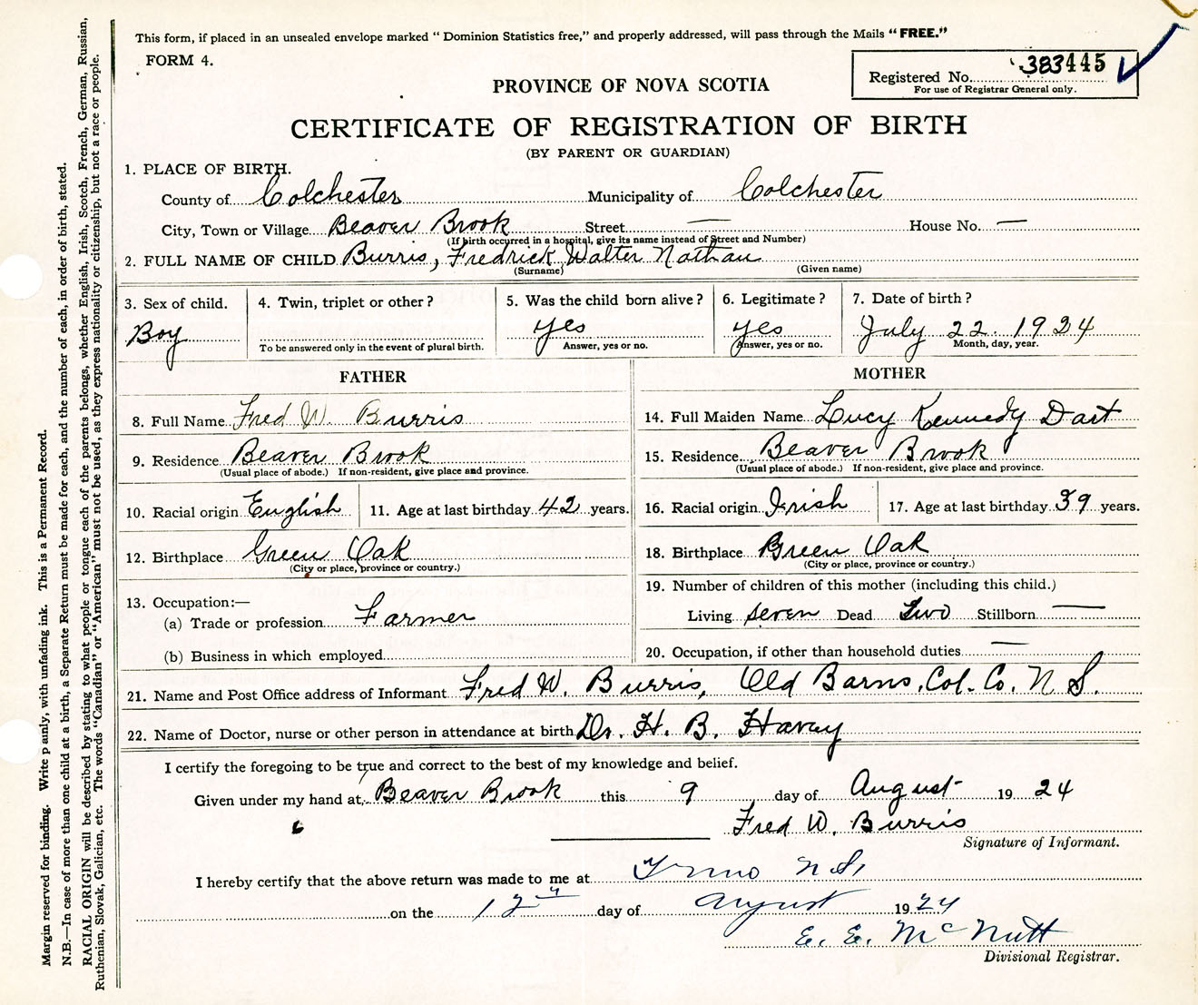 Male Birth Registration: Year: 1924 number: 38300445