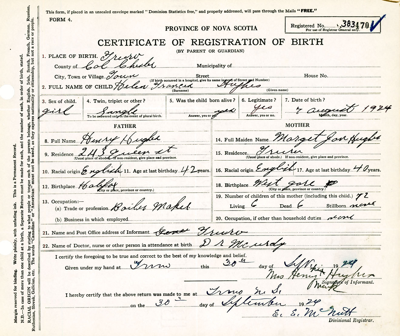Female Birth Registration: Year: 1924 number: 38300470