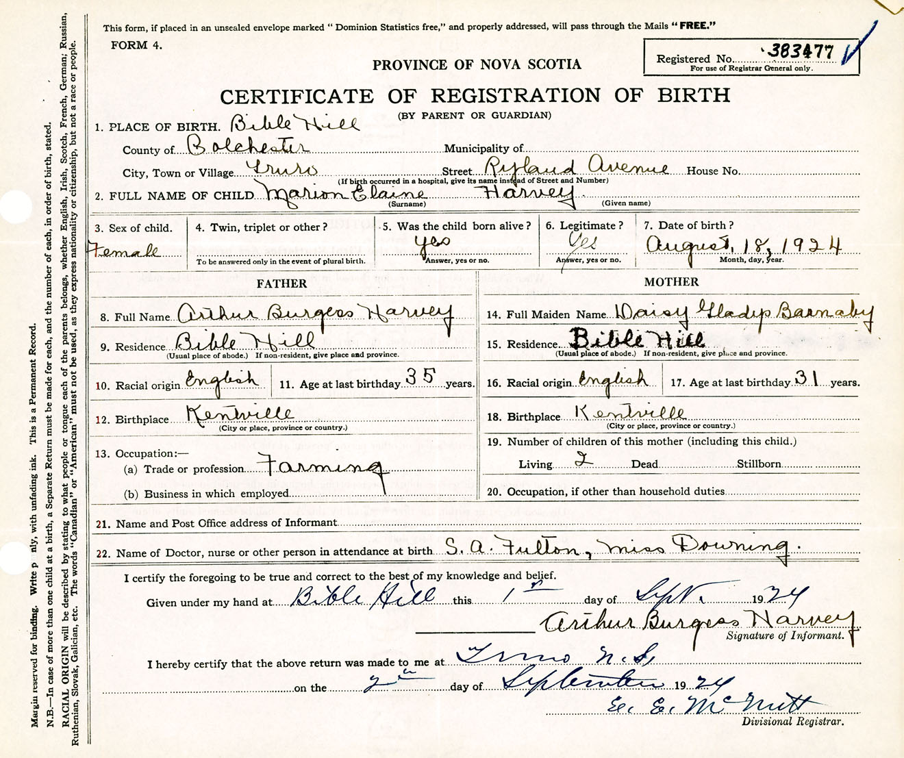 Female Birth Registration: Year: 1924 number: 38300477