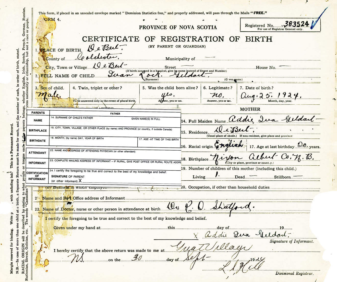 Male Birth Registration: Year: 1924 number: 38300524