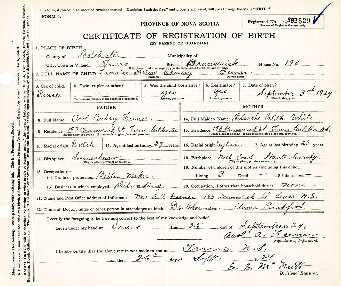Female Birth Registration: Year: 1924 number: 38300529