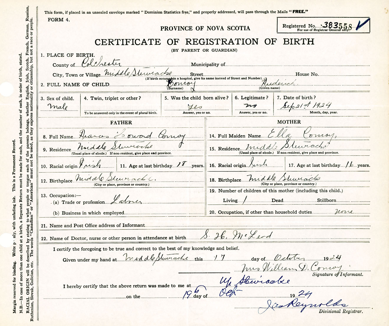 Male Birth Registration: Year: 1924 number: 38300558