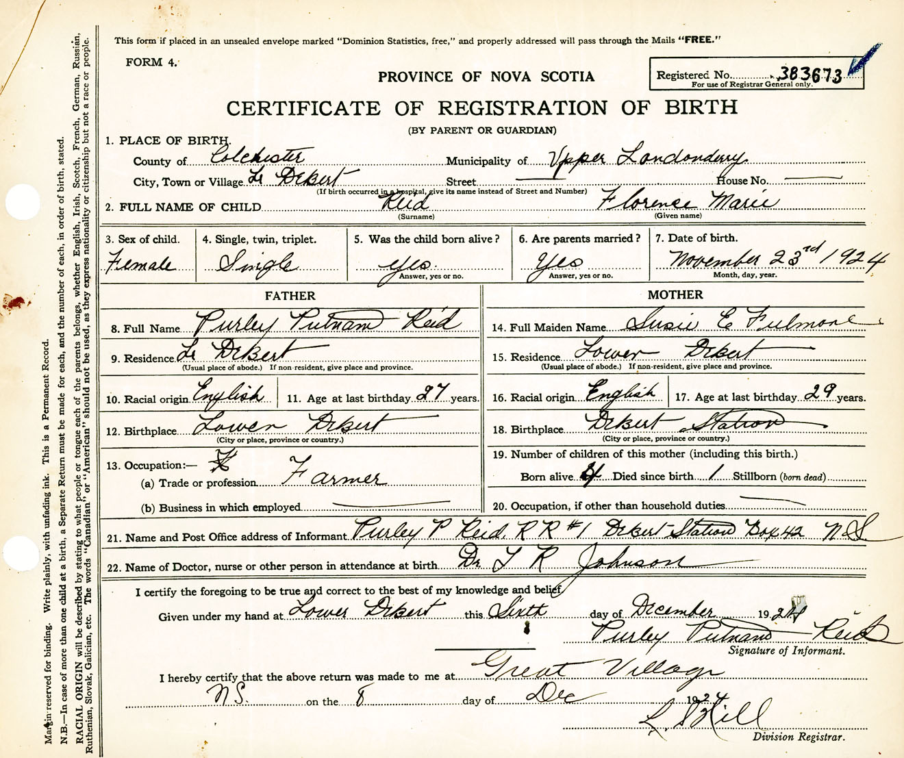 Female Birth Registration: Year: 1924 number: 38300673