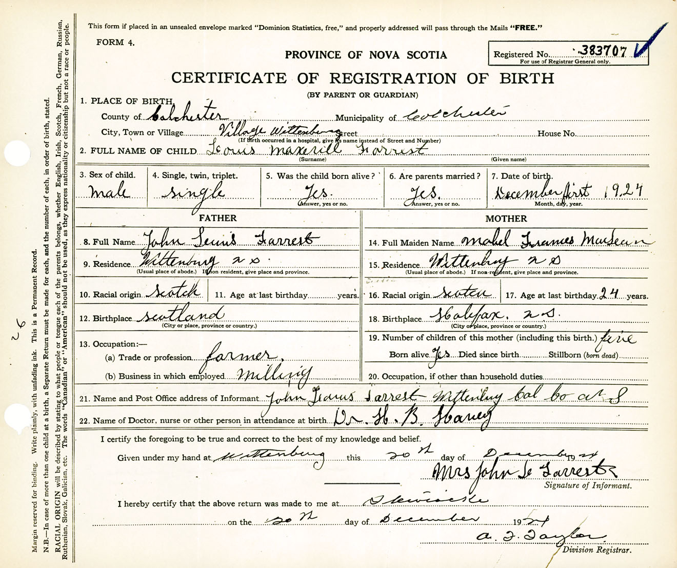 Male Birth Registration: Year: 1924 number: 38300707