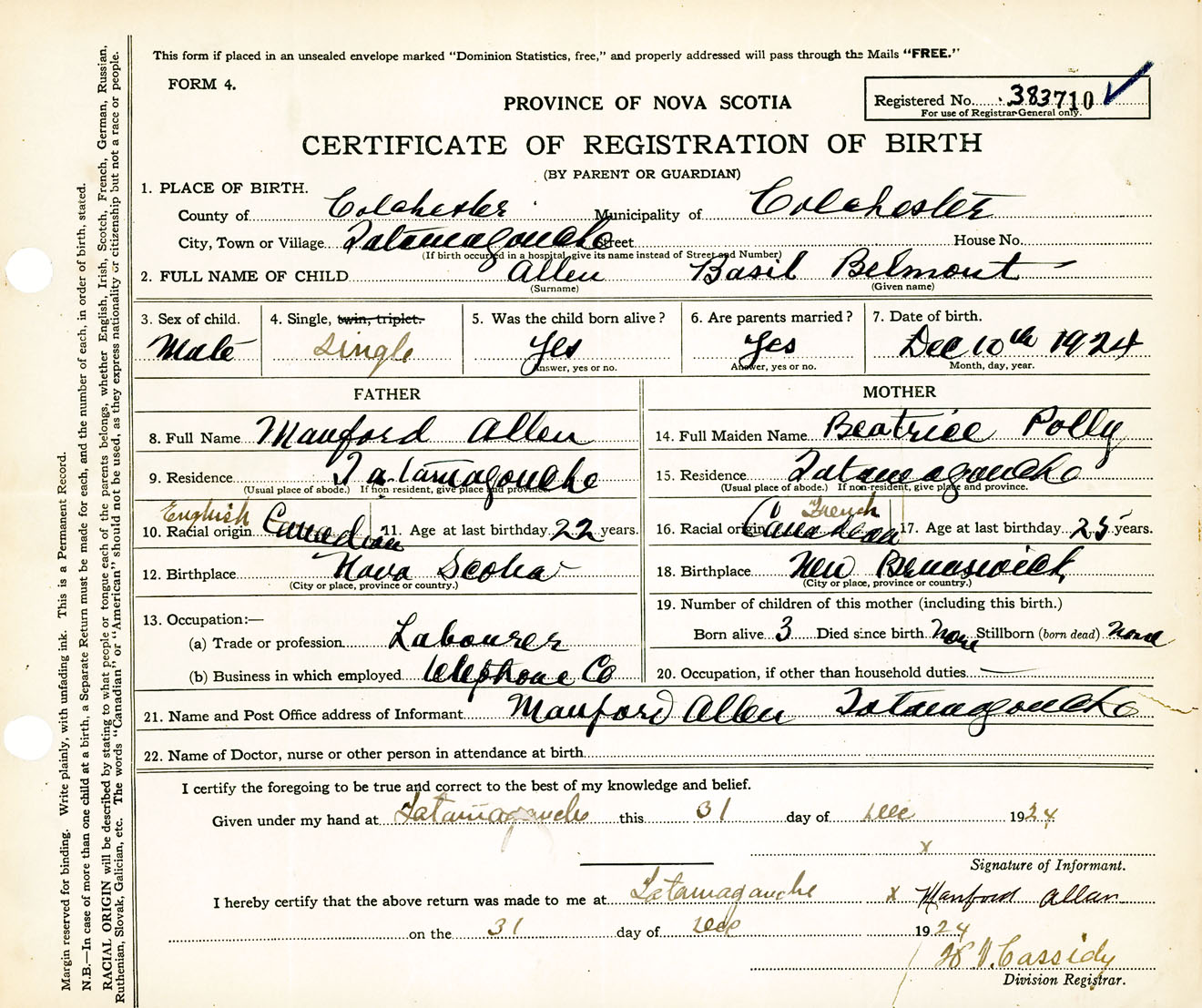 Male Birth Registration: Year: 1924 number: 38300710