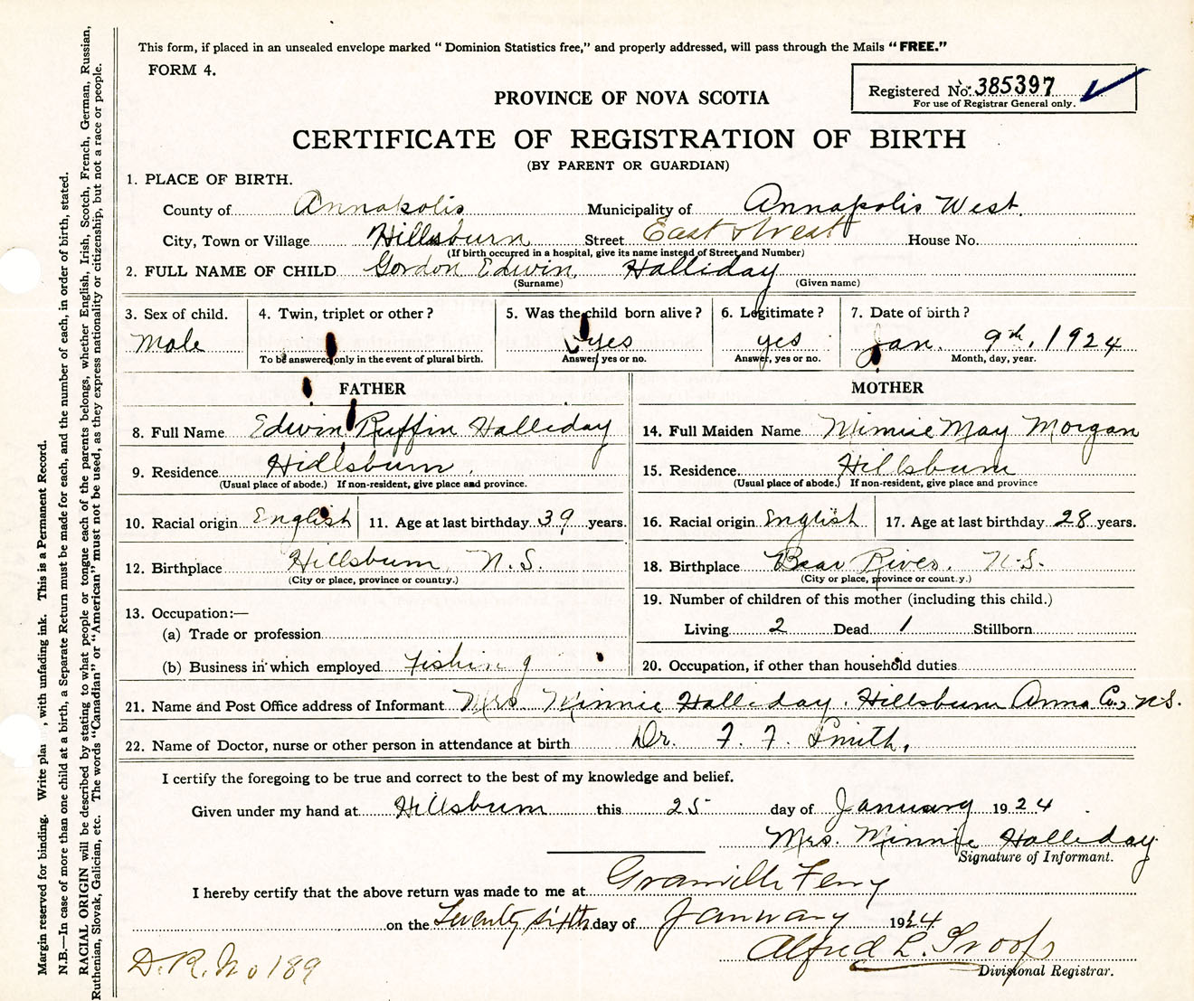 Male Birth Registration: Year: 1924 number: 38500397