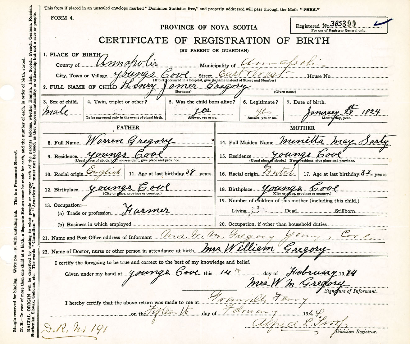 Male Birth Registration: Year: 1924 number: 38500399