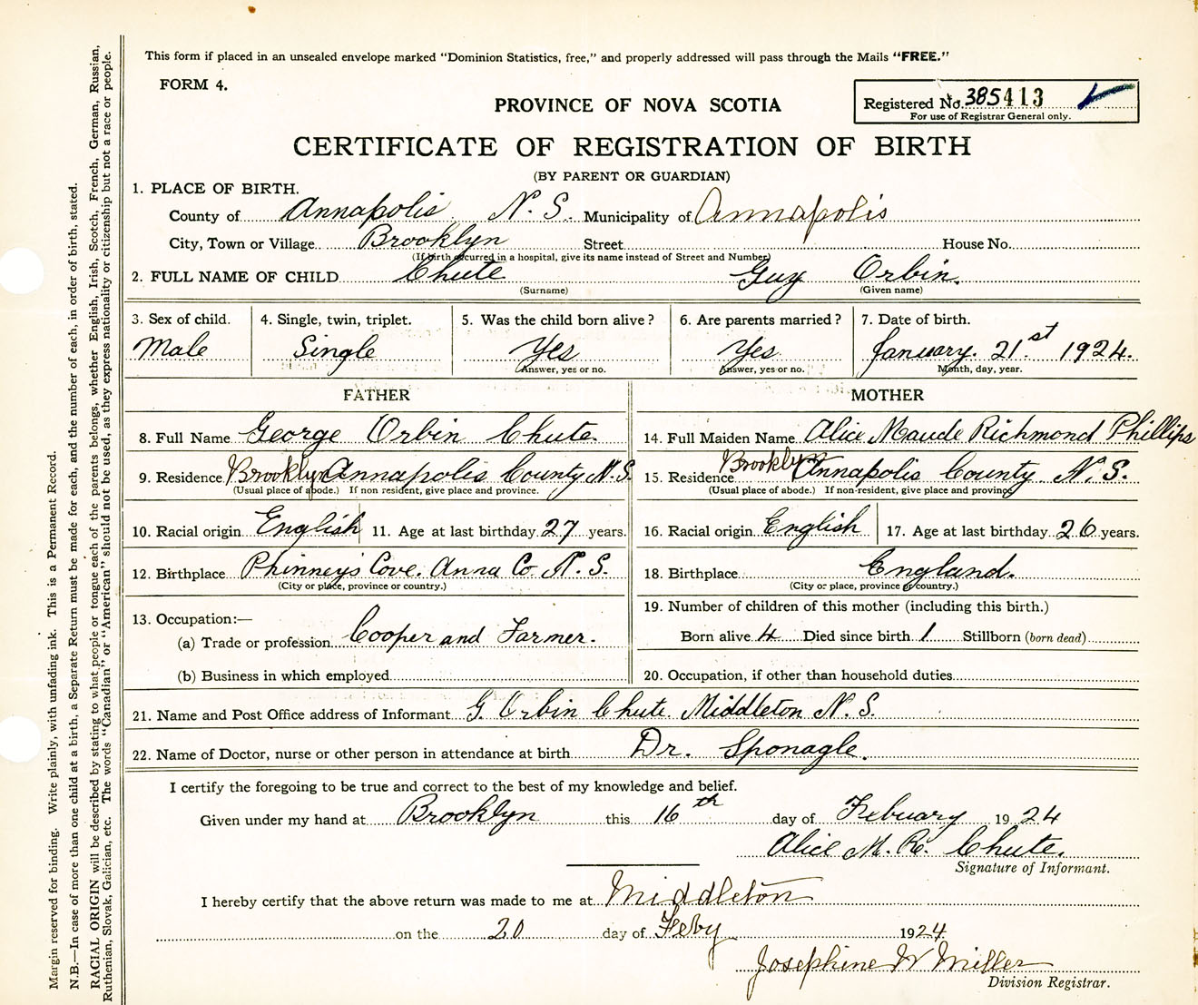 Male Birth Registration: Year: 1924 number: 38500413