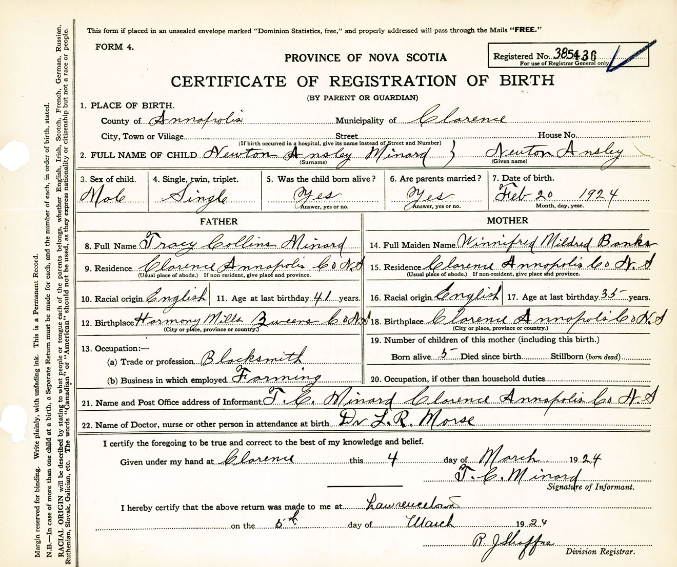 Male Birth Registration: Year: 1924 number: 38500436