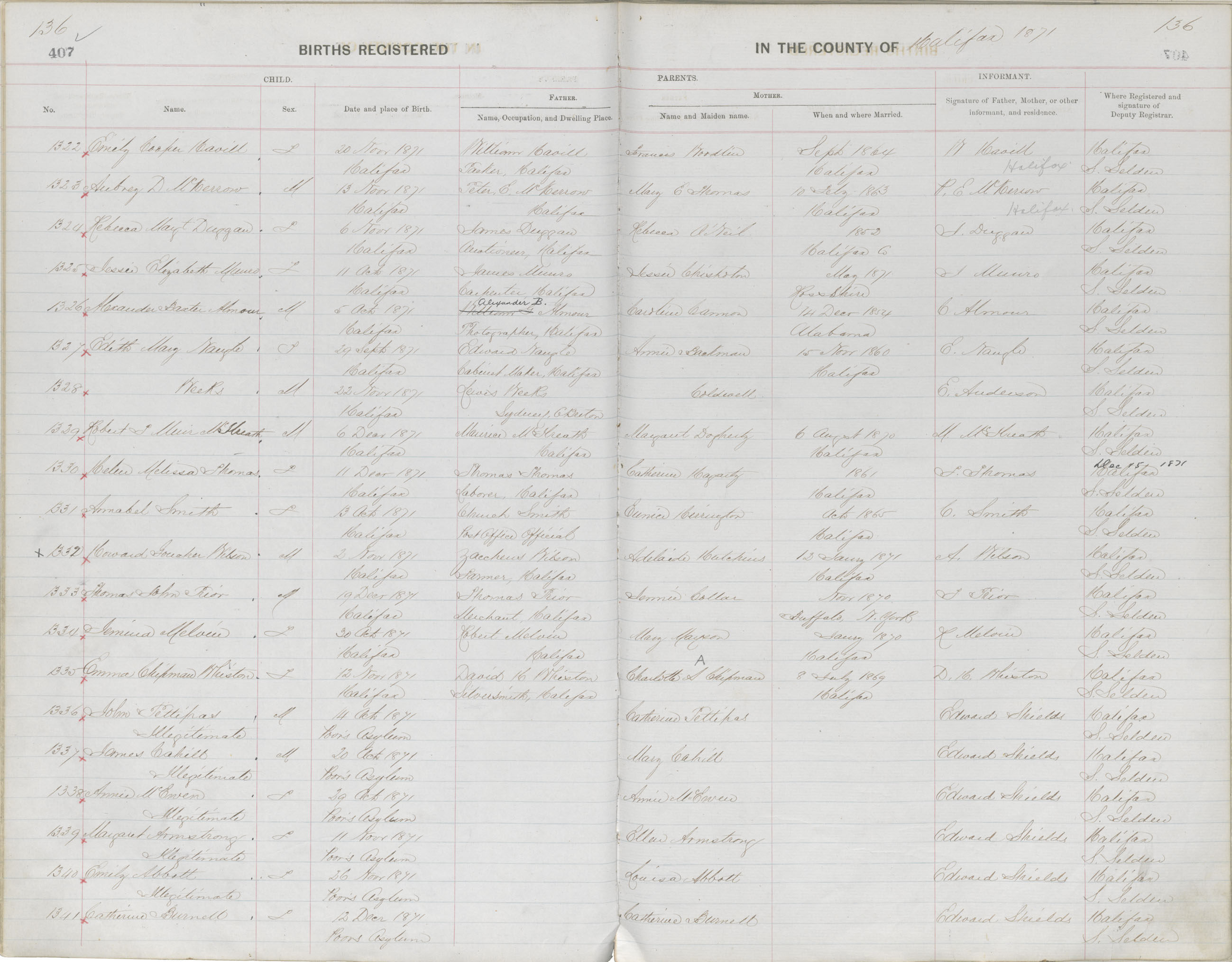 Birth Registration: Year: 1871 book: 1810 page: 136 number: 1322