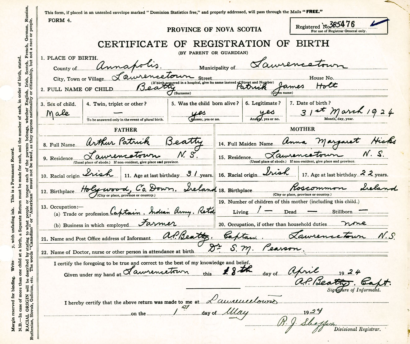 Male Birth Registration: Year: 1924 number: 38500476