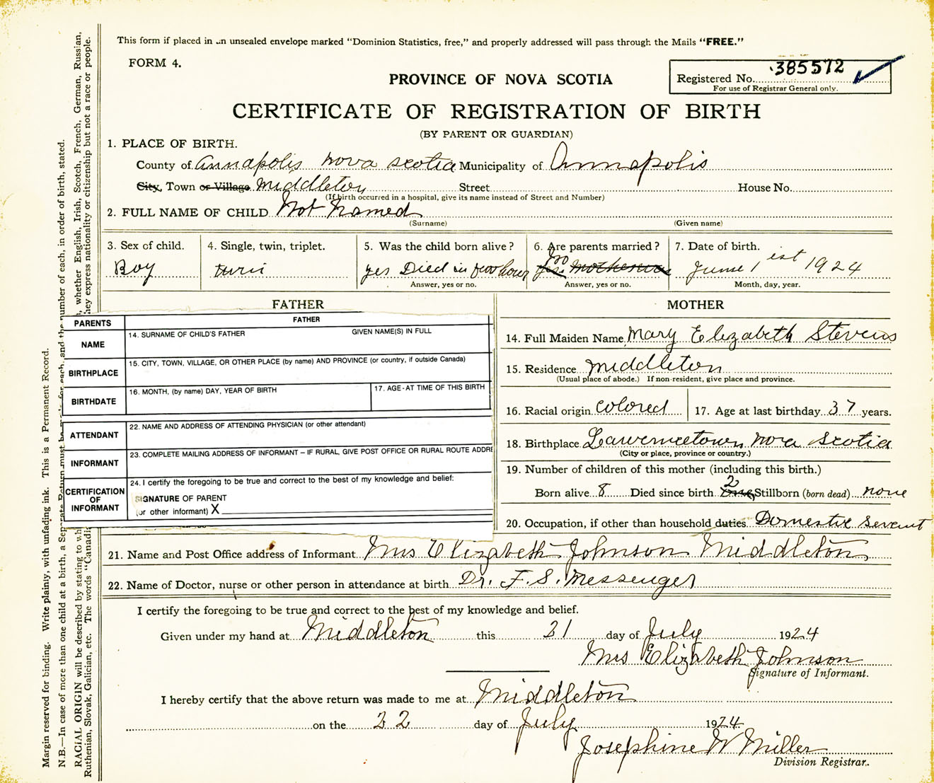 Nova Scotia Archives — https://archives.novascotia.ca/vital-statistics/birth/?ID=450245