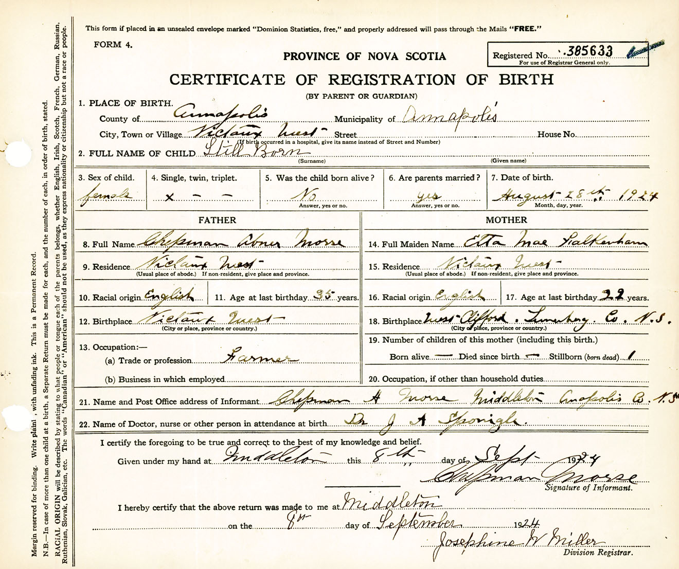 Female Birth Registration: Year: 1924 number: 38500633