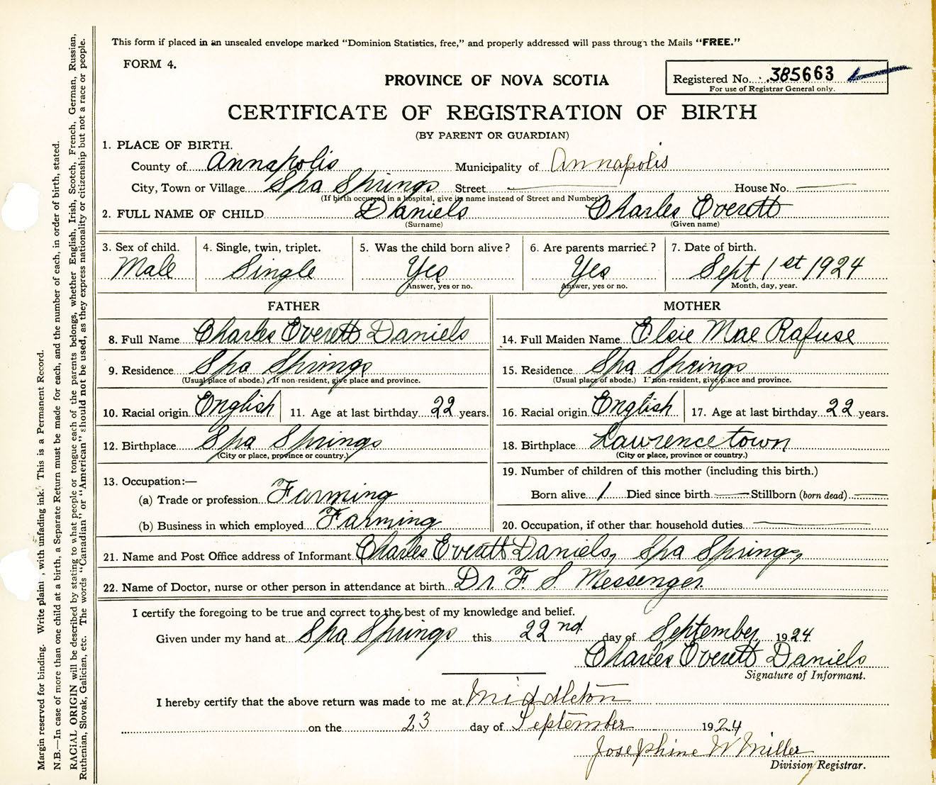 Male Birth Registration: Year: 1924 number: 38500663