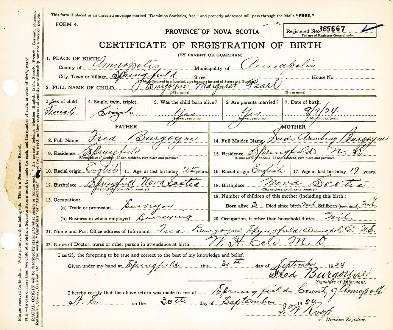 Female Birth Registration: Year: 1924 number: 38500667