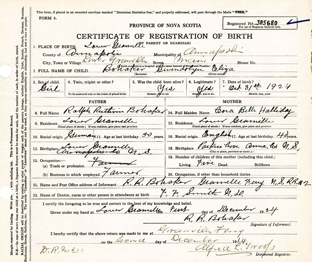 Female Birth Registration: Year: 1924 number: 38500680