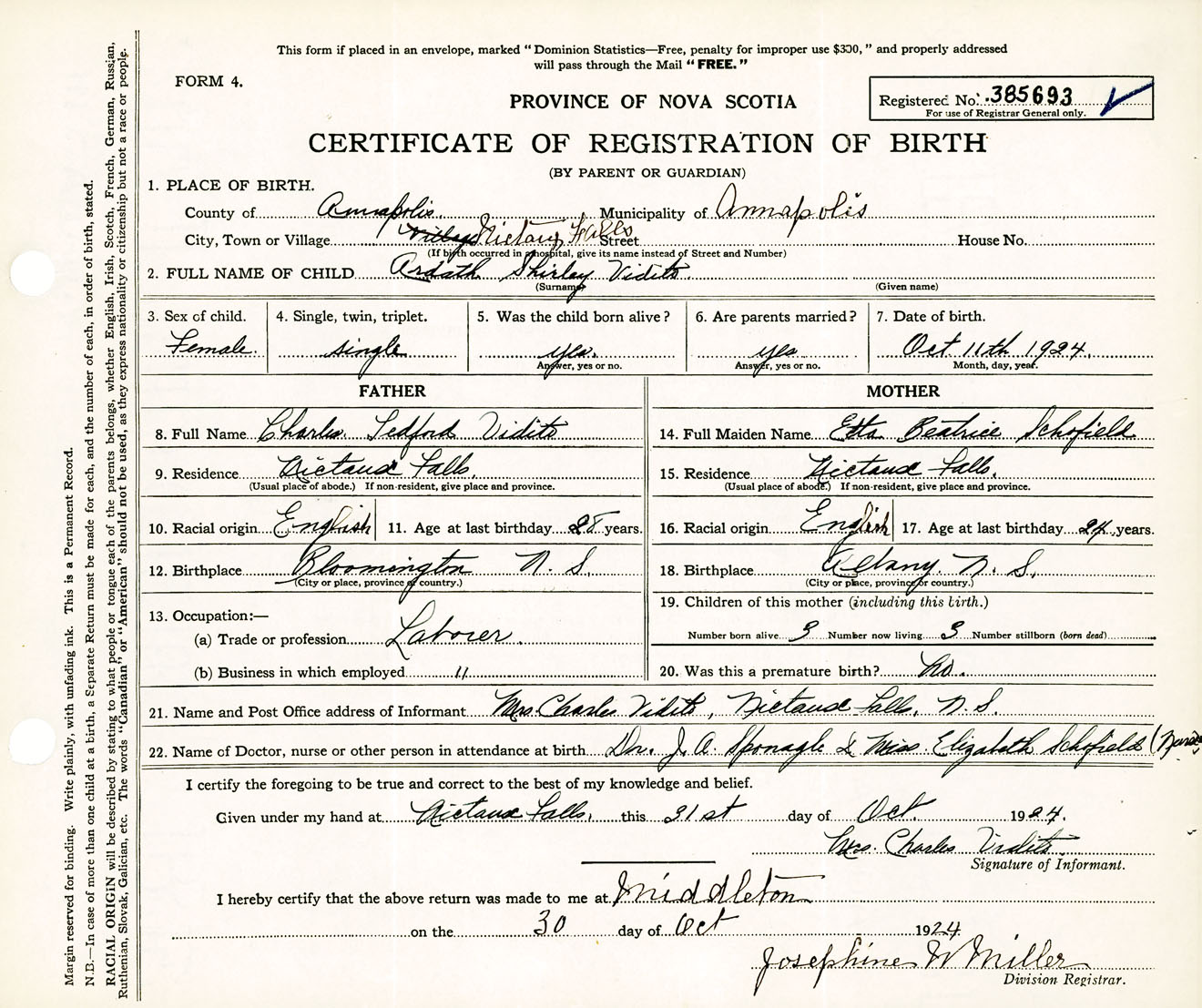 Female Birth Registration: Year: 1924 number: 38500693
