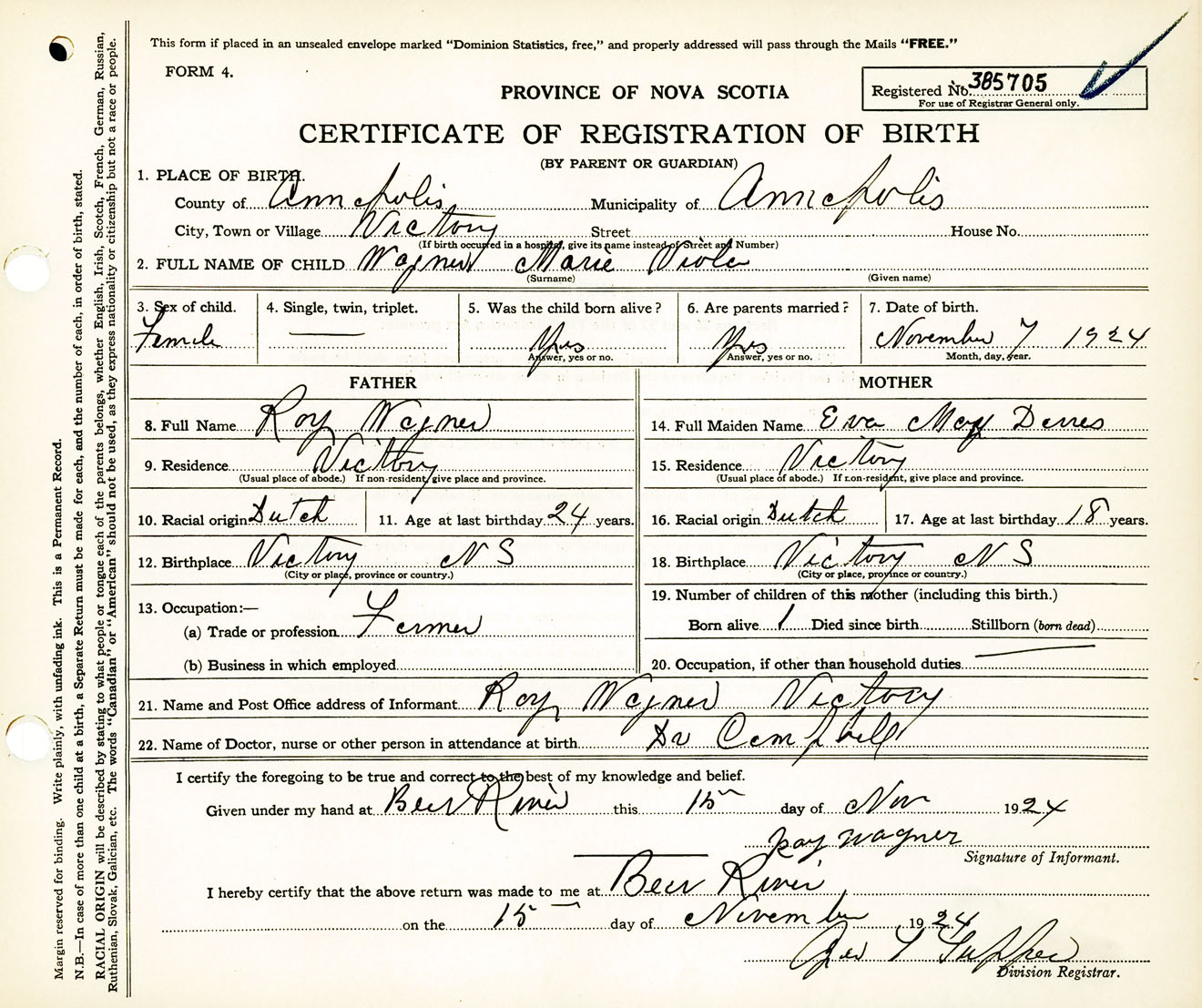 Female Birth Registration: Year: 1924 number: 38500705