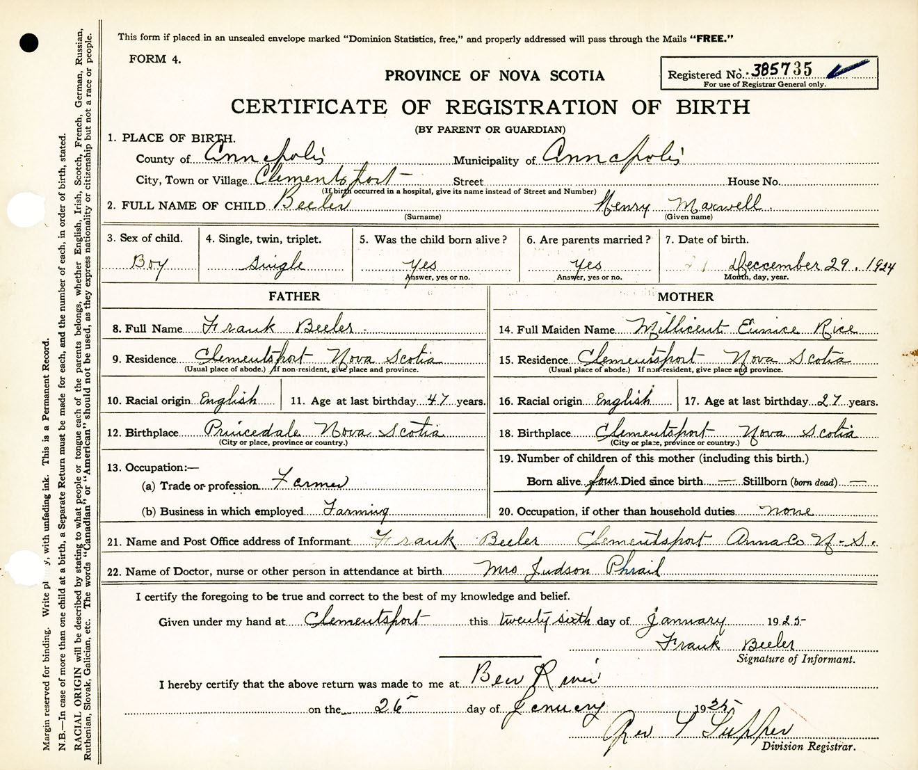 Male Birth Registration: Year: 1924 number: 38500735