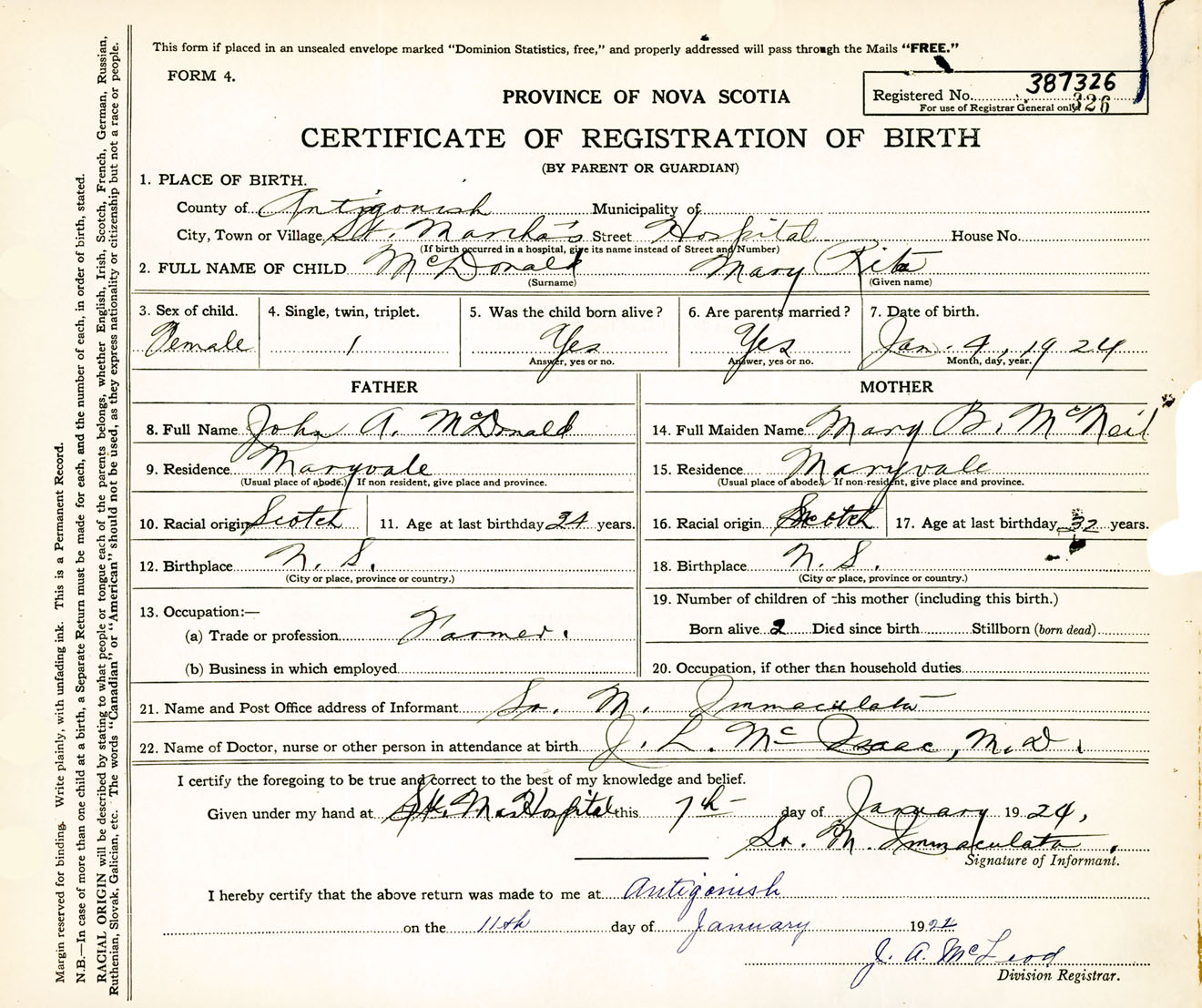 Nova Scotia Archives — https://archives.novascotia.ca/vital-statistics/birth/?ID=450431