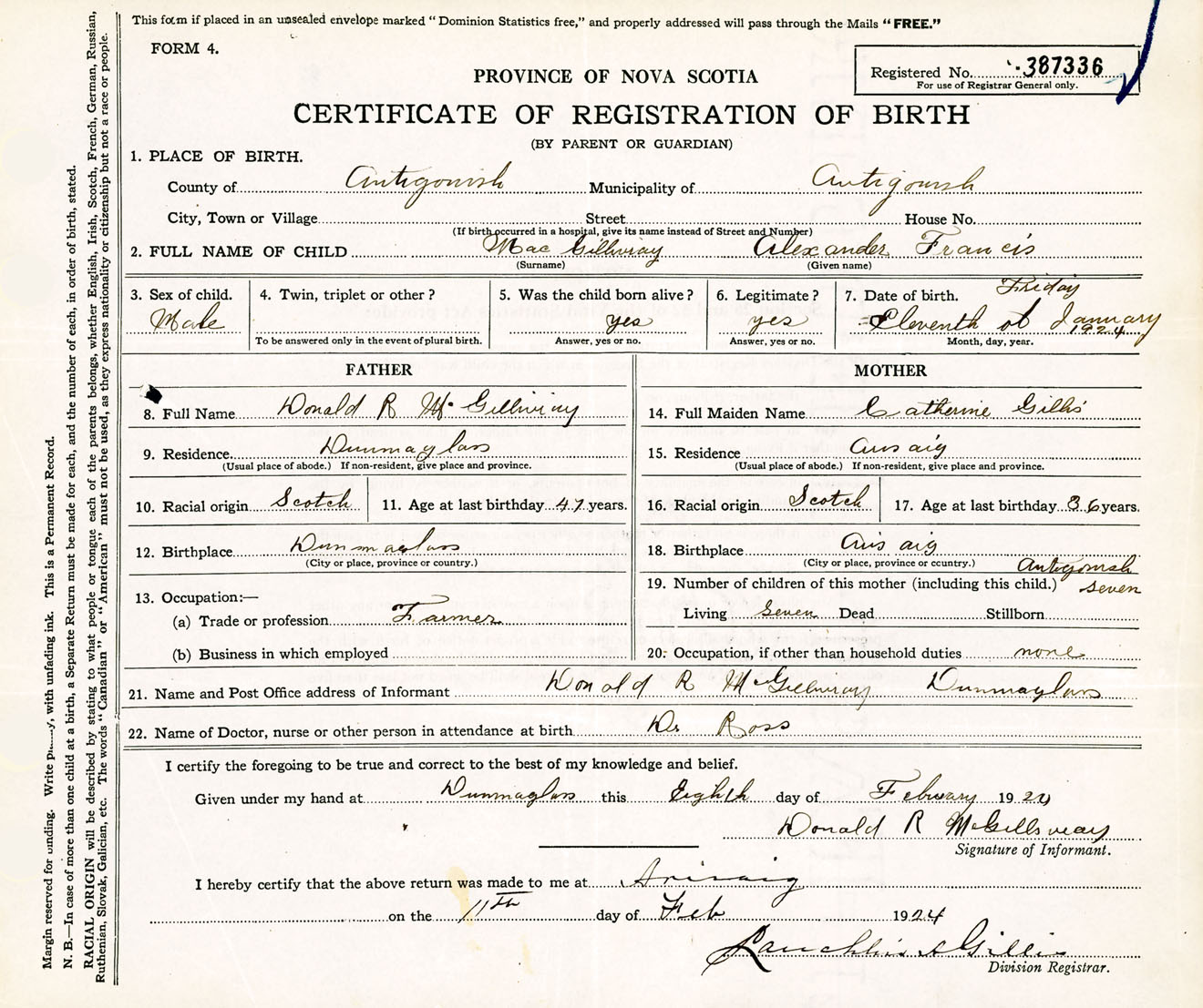 Male Birth Registration: Year: 1924 number: 38700336