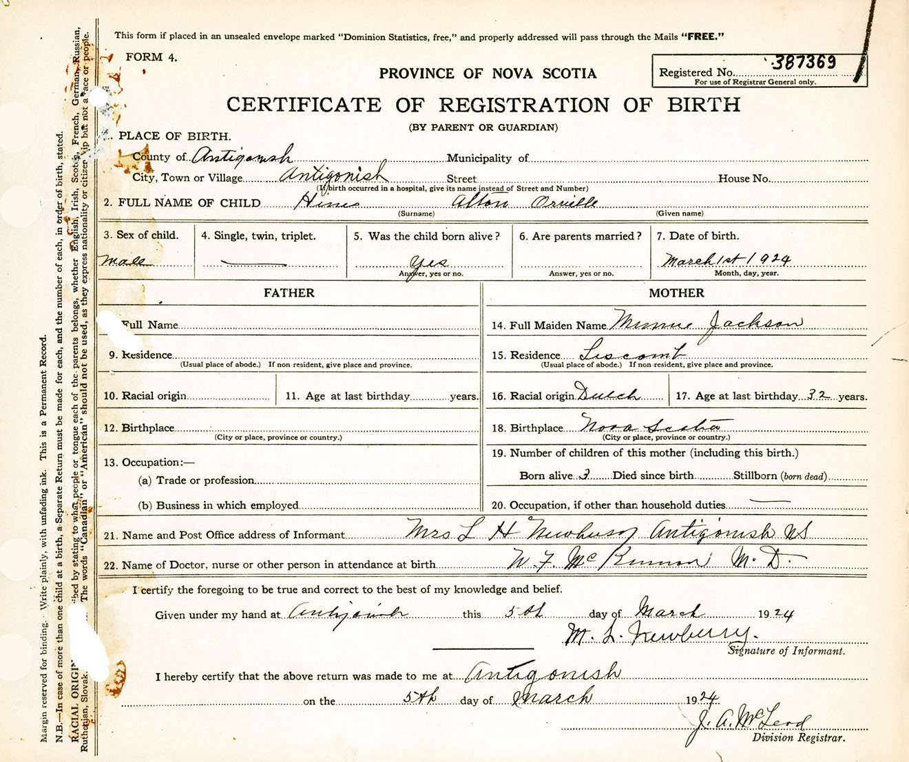 Nova Scotia Archives — https://archives.novascotia.ca/vital-statistics/birth/?ID=450474