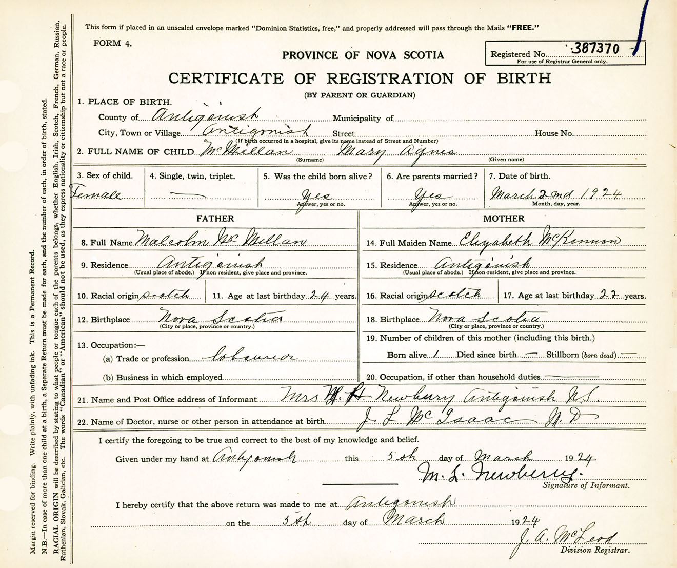 Nova Scotia Archives — https://archives.novascotia.ca/vital-statistics/birth/?ID=450475